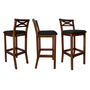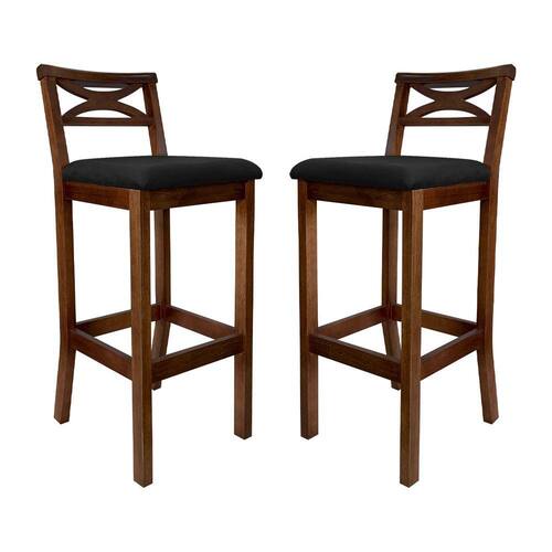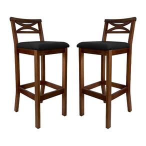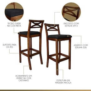 Kit 2 Banquetas Alta Estofada 38x103Cm Ilha Encosto Madri Madeira Maciça Castanho Suede Preto CCS