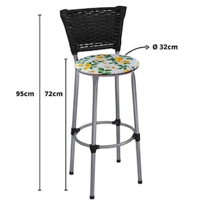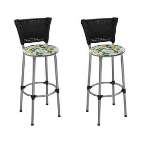 Banqueta Alta Prata Junco Preto com Assento Floral Branco Fortmix
