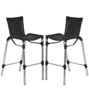 Kit 2 Banquetas Alumínio Fortaleza Alta Para Balcão Cozinha Bar Trama - Preto