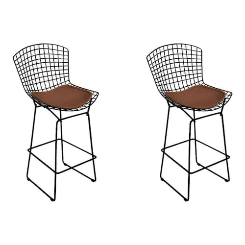 AS IMAGENS SÃO MERAMENTE ILUSTRATIVAS E PODEM SOFRER VARIAÇÕES DE COR E PEQUENOS DETALHES DE ACORDO COM O SEU MONITOR, ILUMINAÇÃO DO AMBIENTE E ATÉ MESMO A SUA PERCEPÇÃO VISUAL.Kit 2 Banquetas Bertoia Preta D80 com Assento Marrom