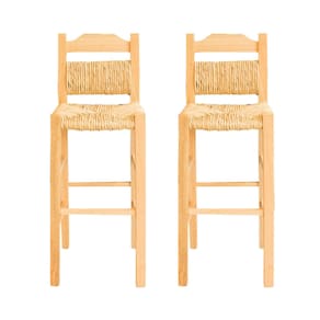 Kit com 2 Banquetas com Assento e Encosto de Palha