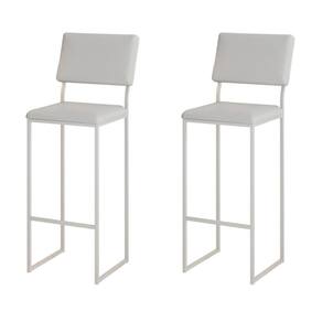 AS IMAGENS SÃO MERAMENTE ILUSTRATIVAS E PODEM SOFRER VARIAÇÕES DE COR E PEQUENOS DETALHES DE ACORDO COM O SEU MONITOR, ILUMINAÇÃO DO AMBIENTE E ATÉ MESMO A SUA PERCEPÇÃO VISUAL.Kit 2 Banquetas com Encosto Industrial e Moderna Nina Branco e Corino Branco