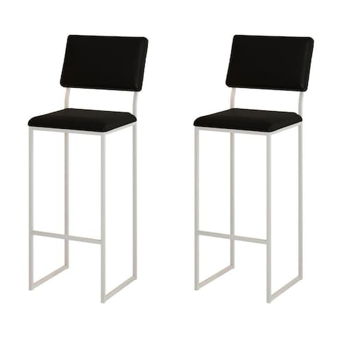 Kit 2 Banquetas Com Encosto Industrial E Moderna Nina Branco E Corino Preto