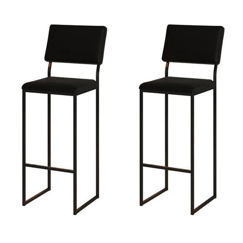 AS IMAGENS SÃO MERAMENTE ILUSTRATIVAS E PODEM SOFRER VARIAÇÕES DE COR E PEQUENOS DETALHES DE ACORDO COM O SEU MONITOR, ILUMINAÇÃO DO AMBIENTE E ATÉ MESMO A SUA PERCEPÇÃO VISUAL.Kit 2 Banquetas com Encosto Industrial e Moderna Nina Preto e Corino Preto