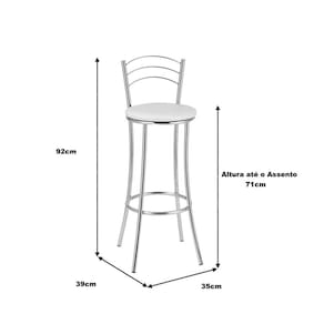 Em busca de renovar o espaço da sua cozinha ou da área reservada para as refeições? Então, a essa banqueta pode ser a sua mais nova queridinha! A peça é estilosa e moderna, compondo o ambiente tanto de maneira decorativa quanto para acompanhar um balcão ou móveis altos e possui o sistema giratório. Ah, as características visuais são excelentes para você conquistar o ambiente que tanto sonhou, basta apostar nas combinações que fazem o seu gosto. Afinal, a melhor forma de decorar é a sua! Acabamento da Estrutura: Cromado Altura do assento até o chão: 71 Altura Regulável: Não Ambiente Principal: Cozinha Cor: Cromado/Branco Cor do Produto: Cromado/Branco Dobrável: Não Escala de Brilho: Brilhante Itens Inclusos: 2 Banquetas Manual de Montagem e Instalação: https://cdn2.madeiramadeira.com.br/atributo/tre-paroni/1325613-2.pdf Material do Assento: Almofada com Espuma Necessita Montagem: Não Origem do Produto: Nacional Peso: 3 Possui Encosto: Sim Possui Rodízio: Não Recomendações de Uso, Manutenção e Limpeza: Deve ser feita com pano macio e seco ou levemente umedecido com água e sabão neutro. Não devem ser utilizados abrasivos como palha de aço e objetos cortantes. Tipo de Assento: Fixo Tipo de Encosto: Fixo
