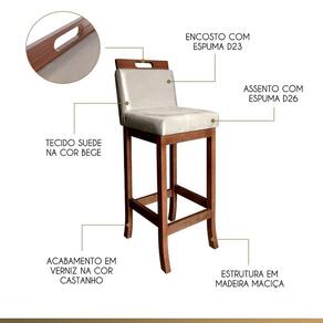 Apresentamos a sofisticada Banqueta Média Milão, perfeita para elevar o estilo e conforto em sua bancada ou mesa. Produzida com madeira maciça de alta qualidade e com um acabamento em verniz castanho, essa banqueta une durabilidade e elegância em uma só peça. Seu assento preenchido com espuma D26 e encosto com espuma D23 proporcionam um conforto excepcional. O Revestimento em Tecido Suede na cor bege adiciona um toque de sofisticação ao ambiente. A Banqueta Média Milão se adapta perfeitamente a diferentes espaços. Desfrute de momentos agradáveis com estilo e qualidade, escolhendo a Banqueta Alta Milão como o destaque da sua decoração.