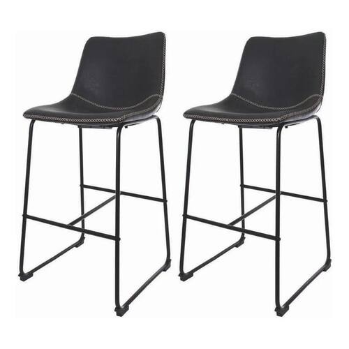 Kit 2 Banquetas Munich Estofadas Pretas com Encosto 74cm Base Metálica - Preto