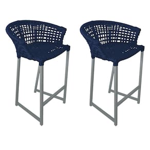 Kit 2 Banquetas Reis Em Corda Náutica E Base Em Alumínio Cinza Para área Gourmet Azul Marinho - Cor: Azul