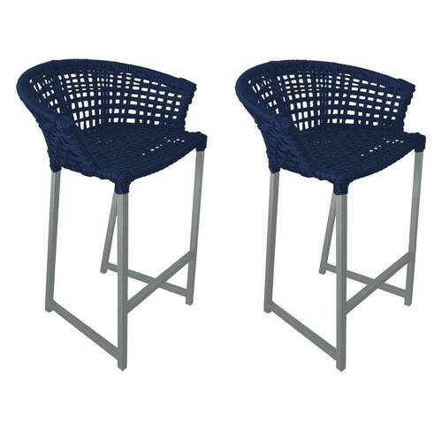 IMAGENS MERAMENTE ILUSTRATIVAS REALIZADO EDIÇÃO, PODENDO HAVER UMA PEQUENA VARIAÇÃO DE COR DEPENDENDO DE CADA TELA OU MONITOR.Kit 2 Banquetas Reis em Corda NÃutica e Base em AlumÃnio Cinza para Ãrea Gourmet Azul Marinho