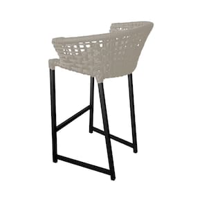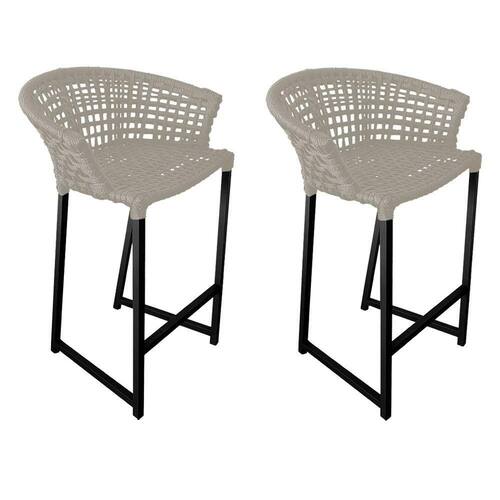 IMAGENS MERAMENTE ILUSTRATIVAS REALIZADO EDIÇÃO, PODENDO HAVER UMA PEQUENA VARIAÇÃO DE COR DEPENDENDO DE CADA TELA OU MONITOR.Kit 2 Banquetas Reis em Corda NÃutica e Base em AlumÃnio Preta para Ãrea Gourmet - Externa Areia
