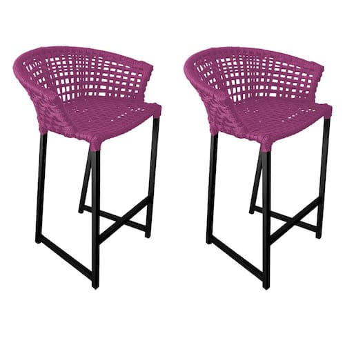 Kit 2 Banquetas Reis em Corda Náutica e Base em Alumínio Preta para Área Gourmet - Externa Rosa