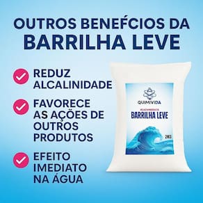 Kit 2 Barrilha Leve 2kg Quimivida pH Piscina e Sabão Barrilha Leve Quimivida 4kg - Carbonato de Sódio Leve Ajuste de pH, limpeza pesada e fabricação artesanal A Barrilha Leve Quimivida é um produto versátil, com alta concentração de carbonato de sódio, ideal para ajustar o pH da água de piscinas, realizar limpezas pesadas e ser utilizado como matéria-prima na fabricação de sabão artesanal e outros produtos químicos. Sua ação imediata e solubilidade eficiente tornam este produto indispensável tanto no uso doméstico quanto em aplicações industriais. Aplicações: Ajuste de pH em piscinas e reservatórios Limpeza de superfícies, pisos e azulejos Fabricação de sabão caseiro e detergentes Uso em indústrias químicas, têxteis e cerâmicas Benefícios: Alta pureza e eficiência imediata Solubilidade rápida na água Embalagem resistente e segura de 2kg Produto da linha premium Quimivida Uso doméstico e Modo de uso em piscinas: Dissolva a quantidade necessária de acordo com o volume da piscina e realize a correção do pH conforme indicado por um medidor. Compre com tranquilidade: entrega rápida, suporte garantido e 100% de satisfação. Barrilha leve, carbonato de sódio, carbonato de sódio leve, barrilha leve para piscina, ajuste de pH piscina, elevar pH da água, limpeza pesada, sabão caseiro, sabão artesanal, fazer sabão em barra, fabricar sabão, alcalinizante para piscina, barrilha para limpeza, ph piscina alcalino, barrilha leve 2kg, carbonato para detergente, carbonato para sabão, barrilha para cerâmica, produto químico piscina, barrilha para uso industrial, quimivida barrilha, estabilizar pH da água, carbonato de sódio industrial, tratamento de água, manter pH piscina, produto para sabão artesanal, insumo químico limpeza, carbonato de sódio sabão, limpeza de azulejos, limpeza pesada cozinha
