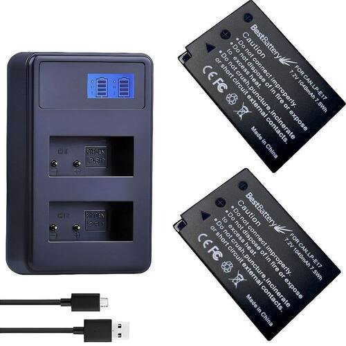 Kit 2 baterias lp-e17 1040mah 7.2v para canon eos m6 mark ii Conteúdo da embalagem: 2 baterias + 1 carregador Especificações: capacidade: 1040 mah tipo: li-ion voltagem: 7.2v número do modelo: lp-e17 peso: 30g Benefícios: 1040 mah alto desempenho mais de 300 ciclos Características: bateria recarregável de ótima qualidade, fabricada com as melhores células disponíveis no mercado, aumentando o tempo de vida útil. não apresenta efeito memória, o que permite recarregar a bateria parcialmente esgotada sem comprometer a performance. sistemas internos de proteção contra excesso de voltagem, excesso de corrente e sobrecarga protegem a bateria de alguma eventual Condição inadequada de uso.