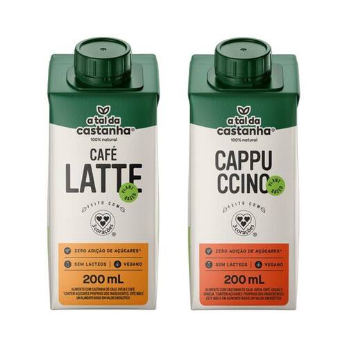 Kit 2 Bebida Vegetal com Café Tal da Castanha: Latte, Cappuccino Kit 2 Quinoa Real Vermelha Orgânica: Em Flocos, Em Grãos