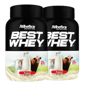 Best Whey - Atlhetica Nutrition Best Whey é um suplemento de proteínas 3W da Atlhetica Nutrition, disponível em diversos sabores deliciosos. Com uma combinação de proteínas hidrolisada, concentrada e isolada do soro do leite, cada porção fornece 25g de proteína de alta qualidade. Ideal para auxiliar na hipertrofia, pode ser consumido no pré ou pós-treino. Além disso, é livre de glúten e oferece uma suplementação completa para quem busca resultados e evoluções significativas. O Best Whey possui uma fórmula exclusiva e deliciosa feita para o consumo diário. Benefícios: Baixo teor de açúcar; Sem glúten; Benefícios ao apetite; Auxilia no pré e pós-treino; Baixo teor de carboidratos; 25g de proteína por porção; Com baixo teor de carboidratos e 25g de proteína por porção, o Best Whey pode ser preparado de várias maneiras diferentes, permitindo que você o inclua de forma prática e deliciosa no seu dia a dia. Ele também é perfeito para deixar suas receitas ainda mais proteicas e saborosas. Sugestão de Consumo: Misture 35g 2 dosadores em 200ml de água ou bebida gelada de sua preferência. O Best Whey também pode ser utilizado em receitas diversas.