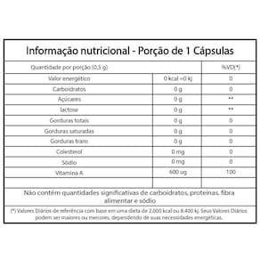 Kit 2 beta caroteno catarinense pharma 60 cápsulas A vitamina a é uma poderosa aliada da visão, no funcionamento do sistema imune e metabolismo do ferro entre outras importantes funções no organismo humano. É sempre importante manter os níveis saudáveis dessa vitamina. Ingredientes: Betacaroteno. Antiumectantes: celulose microcristalina ins 460i e carbonato de cálcio ins 170i e estearato de magnésio ins 470ii , gelificante gelatina ins 428 , corantes: dióxido de titânio ins 171 , vermelho 40 ins 129 , amarelo crepúsculo ins 110 , amarelo de quinoleína ins 104 e azul brilhante ins 133 . Não contém glúten. Recomendação de uso: 1 cápsula. Ingerir com água. Liberado de inserção de código da anvisa com base na rdc nº 240 de 2018 Marca: Não Informado
