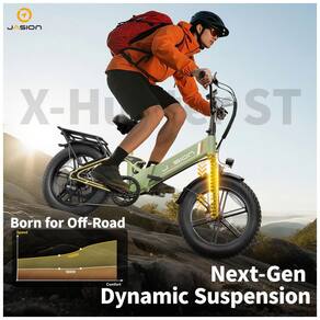 O kit Jasion X-Hunter ST reúne duas bicicletas elétricas dobráveis para adultos, nas cores branca e verde, ambas com quadro step-through em alumínio, pneus 20 x 4 e suspensão dupla, indicadas para uso urbano, trilhas leves e diferentes tipos de terreno. Cada bicicleta combina estrutura dobrável, assento e guidão ajustáveis e racks/cestos dianteiro e traseiro para facilitar o transporte de bagagens e compras.
