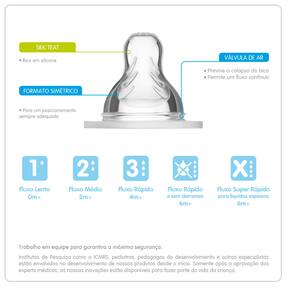 Kit 2 Bicos de Silicone para Mamadeiras 4M+ Fluxo Rápido MAM