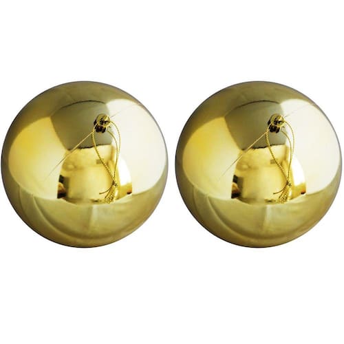 Conjunto de 2 bolas de natal douradas, tamanhos grandes (14cm de diâmetro).
