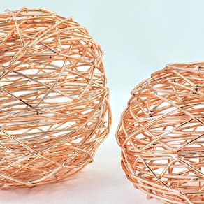 Kit 2 Bolas Decorativas Metal Acobreada Vazada Moderno Kit 2 Bolas Decorativas de Metal Cobre Vazadas Inigual Decor Adicione um toque de modernidade, sofisticação e leveza visual ao seu ambiente com o Kit 2 Bolas Decorativas de Metal Cobre Vazadas da Inigual Decor. Este conjunto, que inclui bolas nos tamanhos Pequeno P e Grande G , é perfeito para quem busca elementos contemporâneos que brinquem com a luz e a forma, criando composições visuais dinâmicas. Habilmente criadas com fios de metal na cor cobre, ambas as bolas decorativas apresentam um design vazado intrigante, onde os fios se entrelaçam para formar cheias de personalidade. A combinação de tamanhos permite criar arranjos harmoniosos em diferentes pontos da casa ou agrupá-las para um impacto visual ainda maior em mesas de centro, aparadores, estantes ou nichos. Com pesos de 355g P e 670g G , as peças transmitem qualidade e durabilidade, enquanto sua estrutura vazada adiciona um toque de leveza e transparência. É a escolha perfeita para quem aprecia um design diferenciado e a elegância do tom cobre, capaz de transformar o ambiente com seu estilo único. Por Que Escolher o Kit de Bolas Decorativas de Metal Cobre Inigual Decor Design Moderno e Artístico: Estrutura vazada em fios de metal que cria um efeito visual interessante. Cor Tendência: Tonalidade cobre, sinônimo de elegância e contemporaneidade na decoração. Material de Qualidade: Fabricadas em metal resistente, garantindo beleza e durabilidade. Versatilidade Decorativa: Ideal para diversos ambientes, adicionando um toque de brilho e originalidade em composições. Leveza Visual: O design vazado permite que a luz passe, criando sombras e texturas no espaço. Especificações do Produto: Bola P: Altura Aprox.: 11,5 cm / Largura Aprox.: 13,0 cm / Profundidade Aprox.: 13,0 cm / Peso: 355 g Bola G: Altura Aprox.: 17,0 cm / Largura Aprox.: 16,5 cm / Profundidade Aprox.: 16,5 cm / Peso: 670 g Material: Metal Cor: Cobre Conteúdo da Embalagem: 2 Bolas Decorativas 1 P, 1 G Importante: Limpe delicadamente com um pano macio e seco. Evite o uso de produtos abrasivos para preservar a cor e o brilho do metal. Observação: As imagens são ilustrativas. Os demais itens decorativos exibidos nas fotos não acompanham o produto. Ean: 7890964166408
