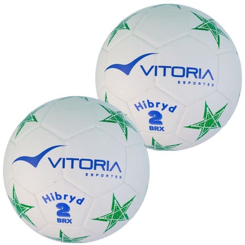 Kit 2 Bolas Futebol Nº 2 Sub 11 Hibryd Campo E Society Bola Hibrida serve para Futebol de Campo e Society. Oficial Vitoria Número 2 Sub 11 - Kit com 2 unidades Indicada para escolas de Futebol de Campo e Futebol Society Principais Características Material: Em PVC Circunferência: 60 cm Pressão estimada: 6 LBS Peso Aproximado: 240 g Garantia: Contra defeitos de fabricação Origem: Nacional Outros Diferenciais Tecnologia Vulcanizada sem costuras , tornando o produto mais leve e resistente Com 32 gomos Miolo Silicone, removível e lubrificado Obs. Sempre umedecer a agulha para inflar a bola Marca: Vitoria Esportes