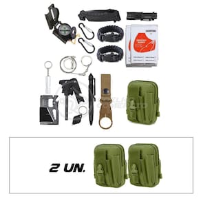 Chegou o mais completo kit de Sobrevivência portátil, acompanhando uma bolsa verde militar que torna a aventura ainda mais emocionante. Por ser um modelo compacto você poderá transporta-lo facilmente para qualquer lugar!