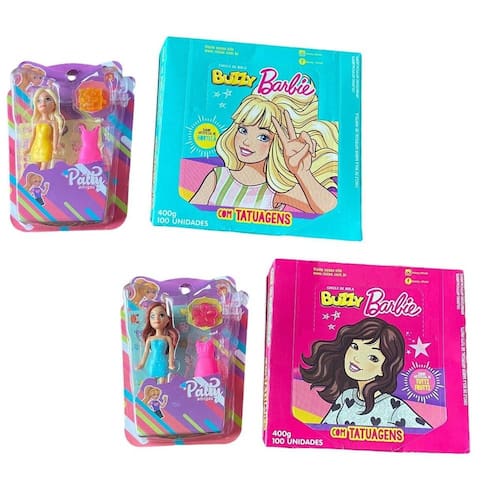 Contém: 2 bonecas patty com acessórios + anel 2 caixas chiclete Buzzy com 100 unidades Com figurinhas de tatuagem temporária Sabor :Hortelã ou tutti frutti estaremos enviando o sabor disponível em . Boneca patty Cor: estaremos enviando a cor da boneca aleatória conforme disponibilidade em . Dimensão do Produto aproximada: 8,5cm x 2,5cm Composição: Plástico Indicação: maiores de 3 anos Imagem meramente ilustrativa. -01 Homologação Inmetro: IP-BRI-2511/2021-01