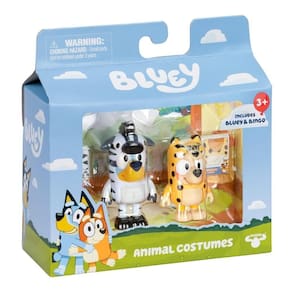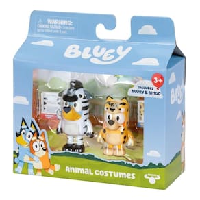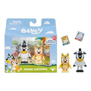 Leve a diversão de Bluey para casa com o Kit 2 Bonecos 6cm Bluey - Fantasia de Animal! Inspirado no episódio Roupinhas, esse conjunto traz Bluey e Bingo vestidas com adoráveis macacões de fantasia de animais. Bluey está fantasiada de zebra, enquanto Bingo veste um macacão de chita, prontas para viver grandes aventuras.