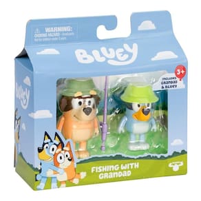 Reviva momentos especiais de Bluey com o Kit 2 Bonecos 6cm Bluey - Pescaria com Vovô! Inspirado no episódio Vovô, esse conjunto traz Bluey e seu avô prontos para um dia cheio de diversão. Os dois estão vestidos com chapéus de pescador e acompanham um acessório de vara de pesca que pode ser segurado por Bluey ou pelo Vovô, tornando a brincadeira ainda mais interativa.
