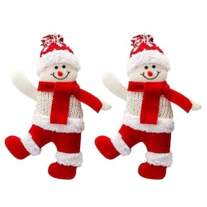 Conjunto 2 Bonecos de Neve Pendente Natalinos Pelúcia Candy Tricô 23cm – Vermelho e Branco