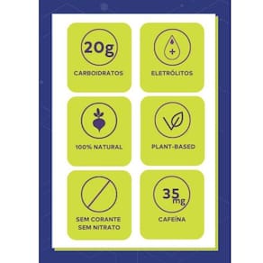 Ingredientes: xarope de tapioca, água, isomaltulose palatinose , beterraba em pó, cafeína natural, ácido cítrico, sulfato de magnésio, cloreto de sódio, citrato de potássio, acerola em pó, aroma natural de limão.