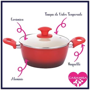 - Espessura: 3,7 mm - Material: Alumínio com revestimento cerâmico - Marca: Class Home - Cor: Vermelho - Conteúdo: 2 Caçarolas