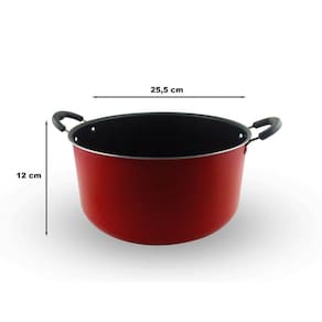 Características A Caçarola Grande Família é feita de alumínio reforçado, conferindo maior resistência ao produto. Conta com revestimento interno e externo de 5 camadas de antiaderente. A tampa de vidro possui furo para a liberação de vapor. As alças e o pomel são fabricados em baquelite antitérmico. Essa caçarola está disponível em 4 tamanhos diferentes.