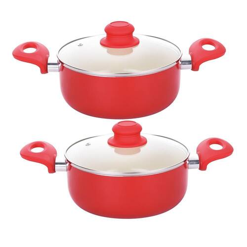 Ficha Técnica: Caçarola 20cm - Altura: 8cm - Altura com tampa: 13,5cm - Diâmetro: 20cm - Comprimento com cabo: 34cm - Espessura: 1.8 mm - Material: Alumínio com revestimento cerâmico - Marca: Class Home - Cor: Vermelho - Conteúdo: 2 peças