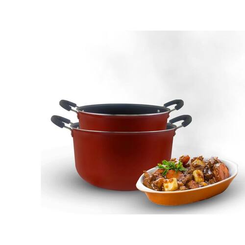Kit 2 Caçarolas Tamanho Grande Familia Dona Chefa Anti Aderente Tampa de Vidro 24cm 28cm Vermelho Características: A Caçarola Grande Família é feita de alumínio reforçado, conferindo maior resistência ao produto. Conta com revestimento interno e externo de 5 camadas de antiaderente. A tampa de vidro possui furo para a liberação de vapor. As alças e o pomel são fabricados em baquelite antitérmico. Estas Caçarolas são fáceis de usar e limpar proporcionando maior praticidade e tempo na hora de preparar suas refeições. Especificações: - Tampa Vidro- Anti Aderente- Alças Baquelite- Caçarola 24 / 28- Alumínio Peso e Medida: 28: - Peso: 1,378- Altura: 15,5 cm- Diâmetro: 28 cm- Largura: 38 cm 24: - Peso: 1,068- Altura: 15 cm- Diâmetro: 24 cm- Largura: 33 cm Itens Inclusos: - 01 Panela Caçarola 28 cm- 01 Panela Caçarola 24 cm- 02 Tampa de Vidro