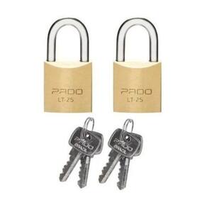Kit 2 Cadeados Pado Com Chaves Iguais 25mm Código: 51005514 Num.de Chaves: 4 Núm.de Cadeados: 2 Composição: Latão, Aço inox Grau de Segurança: 2 (Leve) Tamanho: 25mm Garantia: 15 anos A imagem do produto é ilustrativa e pode variar de tonalidade e cor de acordo com a configuração de cada monitor. Os objetos que compõem a foto ambientada não acompanham o produto. Fotos meramente ilustrativas.
