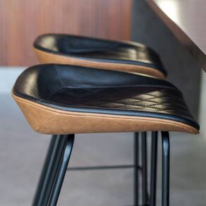 Leve modernidade e sofisticação para seu ambiente com o Kit de 2 Banquetas Industriais Altas com Assento Estofado Preto Marrom Leather da EdeCasaMoveis. Ideal para cozinhas, bares e áreas gourmet, esse kit é perfeito para quem busca design, conforto e funcionalidade em dobro.