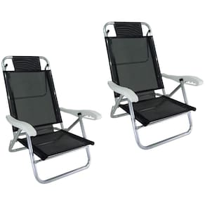 Kit 02 Cadeira de Praia Alumínio 5 Posições Banho de Sol Zaka