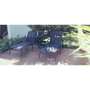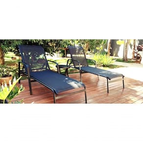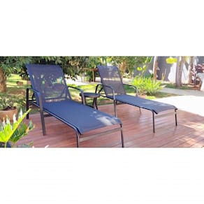 Kit 2 Espreguiçadeiras em tela sling e alumínio com mesinha lateral.