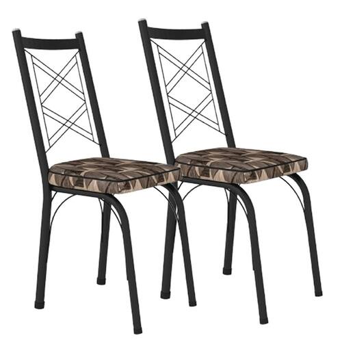 Kit 2 Cadeiras Aço Carbono Tubular Metálica Acabamento Fosco D-28 Julia - Preto