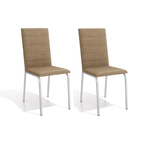 Kit 2 Cadeiras Sala Jantar Amsterdã 2c091 2 Un Cromado/linho Capuccino - Kappesberg