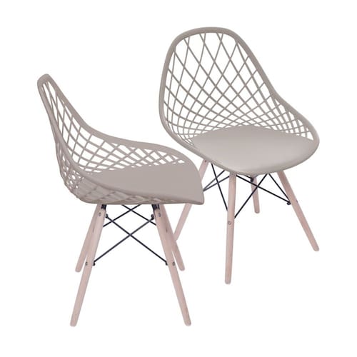 Kit 2 Cadeiras Base Madeira Kaila Cinza - Bege