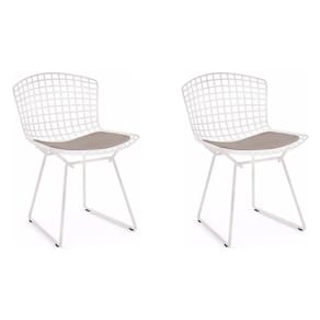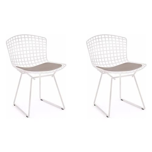 AS IMAGENS SÃO MERAMENTE ILUSTRATIVAS E PODEM SOFRER VARIAÇÕES DE COR E PEQUENOS DETALHES DE ACORDO COM O SEU MONITOR, ILUMINAÇÃO DO AMBIENTE E ATÉ MESMO A SUA PERCEPÇÃO VISUAL.Kit 2 Cadeiras Bertoia Branca com Assento Bege