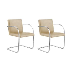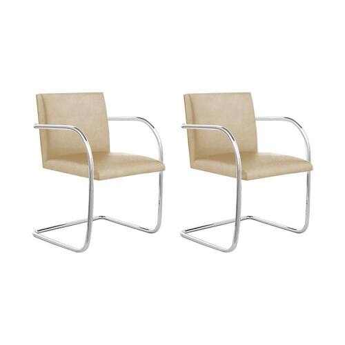 AS IMAGENS SÃO MERAMENTE ILUSTRATIVAS E PODEM SOFRER VARIAÇÕES DE COR E PEQUENOS DETALHES DE ACORDO COM O SEU MONITOR, ILUMINAÇÃO DO AMBIENTE E ATÉ MESMO A SUA PERCEPÇÃO VISUAL.Kit 2 Cadeiras Brno Couro Natural Bege Tubular Cromada
