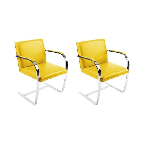 AS IMAGENS SÃO MERAMENTE ILUSTRATIVAS E PODEM SOFRER VARIAÇÕES DE COR E PEQUENOS DETALHES DE ACORDO COM O SEU MONITOR, ILUMINAÇÃO DO AMBIENTE E ATÉ MESMO A SUA PERCEPÇÃO VISUAL.Kit 2 Cadeiras Brno EscritÃrio Couro SintÃtico Amarelo Barra Chata Cromada
