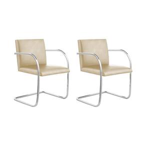 AS IMAGENS SÃO MERAMENTE ILUSTRATIVAS E PODEM SOFRER VARIAÇÕES DE COR E PEQUENOS DETALHES DE ACORDO COM O SEU MONITOR, ILUMINAÇÃO DO AMBIENTE E ATÉ MESMO A SUA PERCEPÇÃO VISUAL.Kit 2 Cadeiras Brno para EscritÃrio Couro SintÃtico Bege Tubular Cromada