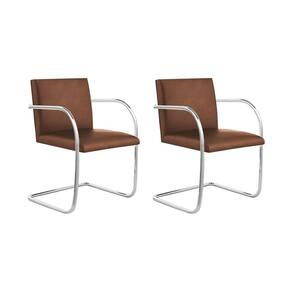 AS IMAGENS SÃO MERAMENTE ILUSTRATIVAS E PODEM SOFRER VARIAÇÕES DE COR E PEQUENOS DETALHES DE ACORDO COM O SEU MONITOR, ILUMINAÇÃO DO AMBIENTE E ATÉ MESMO A SUA PERCEPÇÃO VISUAL.Kit 2 Cadeiras Brno para EscritÃrio Couro SintÃtico Marrom Tubular Cromada