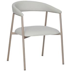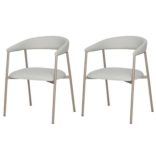 Kit 2 Cadeiras com Braço Chamonix Olivia Fratini Estofado PU Nude Base Aço Carbono Champagne - Bege