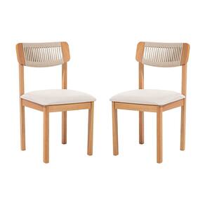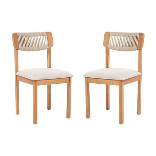 Kit 2 Cadeiras com Encosto Corda Assento Estofado Florença Areia/Cru/Verniz Mel - Bege