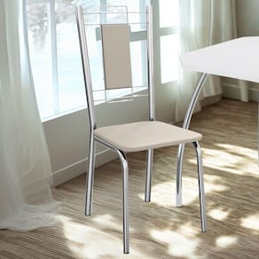 Conjunto 2 cadeiras 2C005, ideais para salas de jantar ou recepções. Estrutura em MDP (15 mm), corpo/ pés tubular em alumínio (encosto com tubo 1 1/4" com parede de espessura 0,9mm e arame 0,5mm e assento com tubo 1" com parede de espessura 0,9mm). Estofadas com espuma D26 e revestido em Corino (material sintético que imita couro) garantindo conforto, durabilidade e fácil limpeza. Possui sapatas para proteção ao piso. Este produto será entregue em 01 volume.